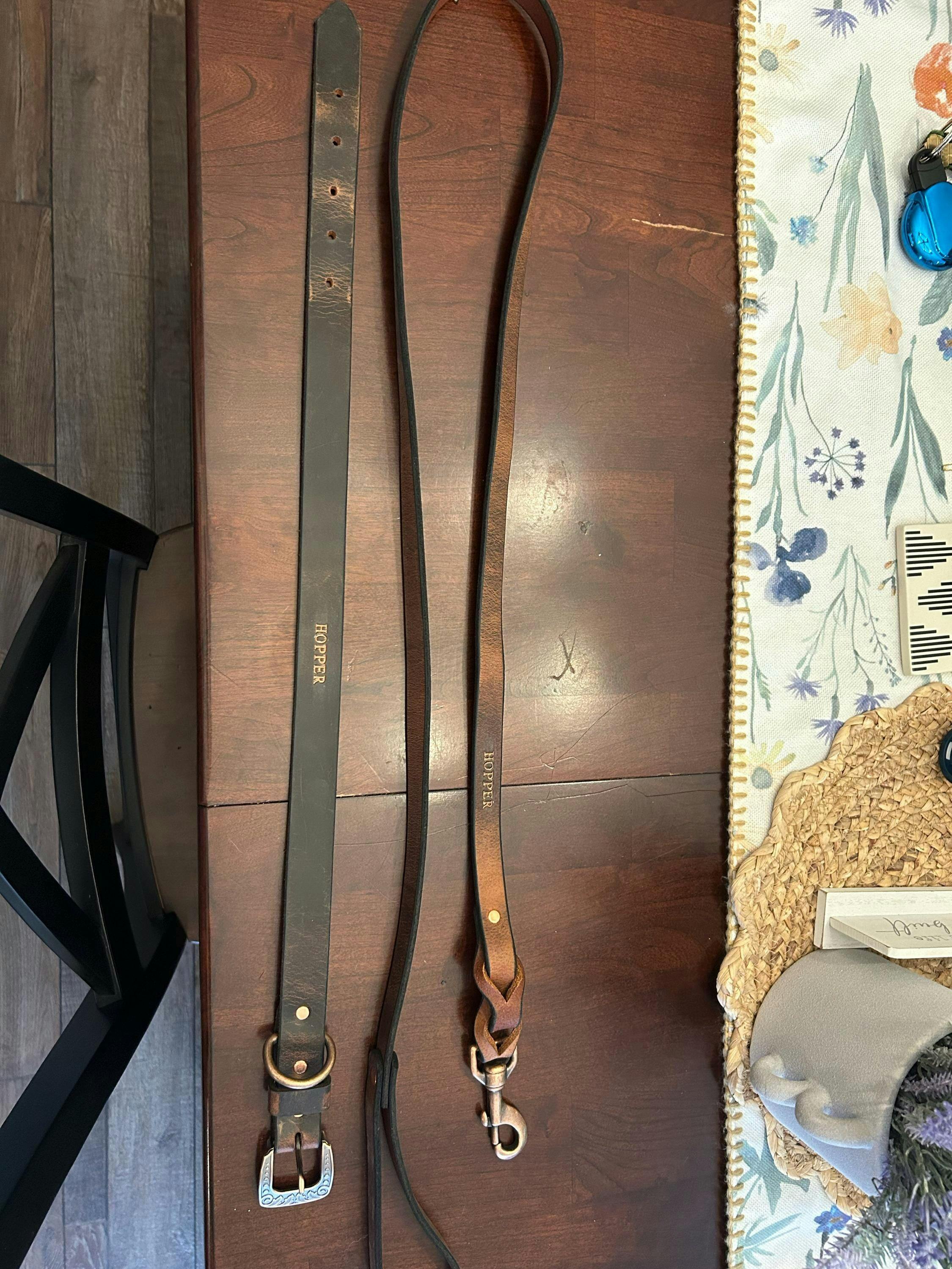 This is just what we were looking for! We knew we wanted a nice brown leather collar and leash set for our dog Hopper that wasn't a cheaply made Amazon find, and this is perfect!