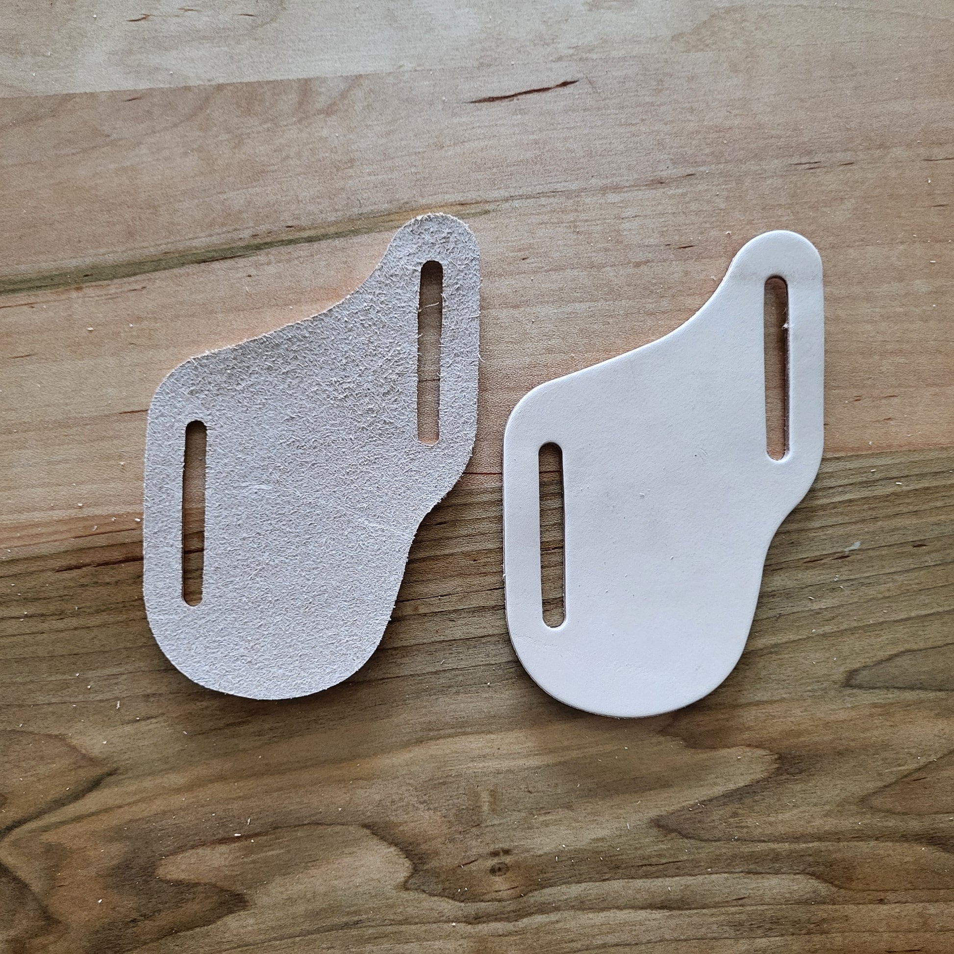 Leather Knife Sheath Blanks are cut from 7-8 oz imported natural veg tan leather, may have some grain irregularities, scars, discolorations, and/or minor nicks on the edges of the blanks.