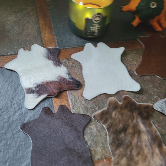 Mini cowhide rugs are an adorable addition to any western home. Use them as coasters for your drinks, wall decor, or as decoration under candles and other smaller items.